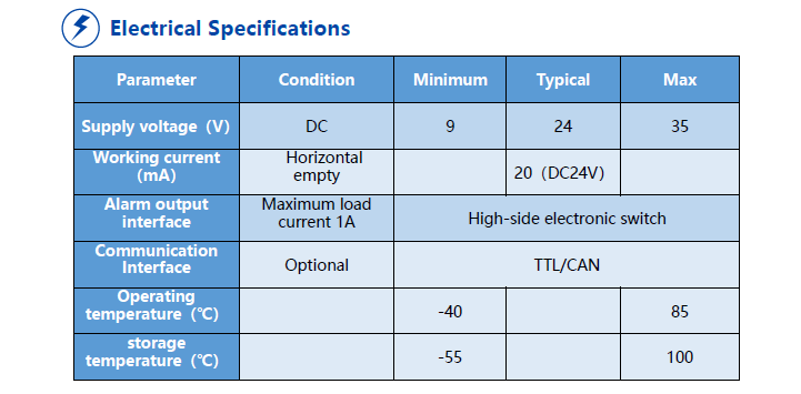 The BIS341 series tilt switch products use high-precision MEMS accelerometers and 32-bit high-performance microprocessors as the core, built-in automatic compensation and filtering algorithms, to a large extent eliminate errors caused by environmental changes. The product has 4 sets of built-in alarm angles, and customers can select preset angles by pressing the button.
