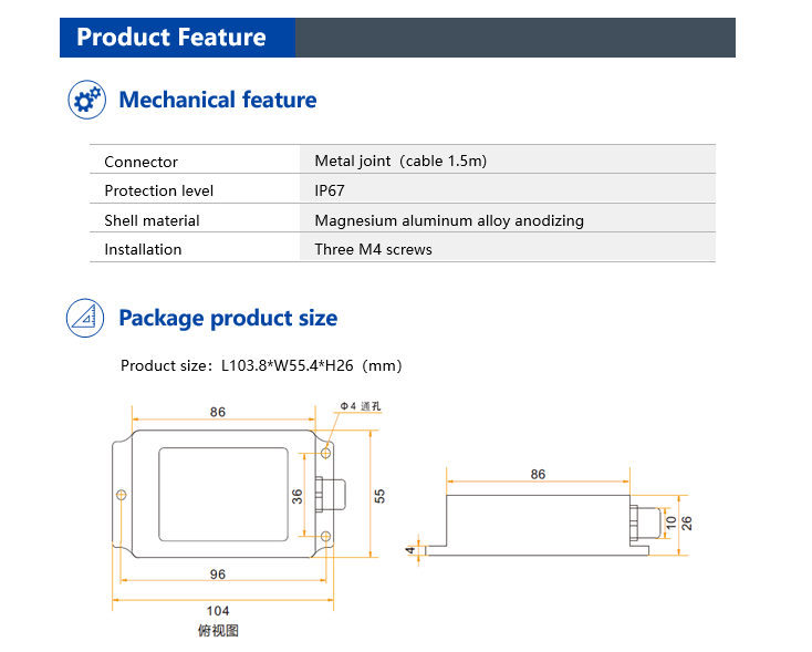 BWS4200 has a measurement range of ±90° and a maximum accuracy of 0.008°. It is currently the most accurate product in the industry. The sensor uses a high-resolution differential digital-to-analog converter with built-in automatic compensation and filtering algorithms to minimize errors caused by environmental changes.